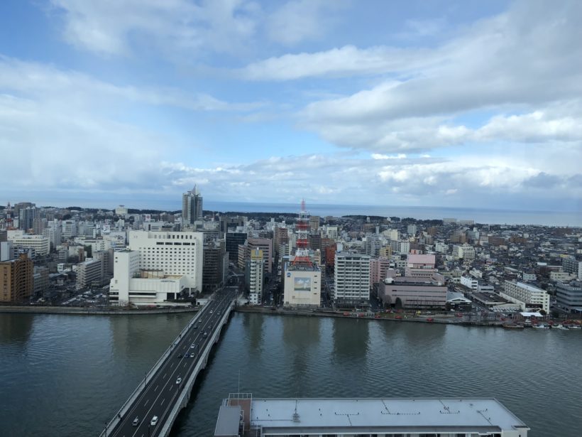 こちらのビルは20階建てとなっており、最上階の20階は「そらの広場」というフロアで、360度ガラス張りになっていて新潟市内を見渡すことができます。