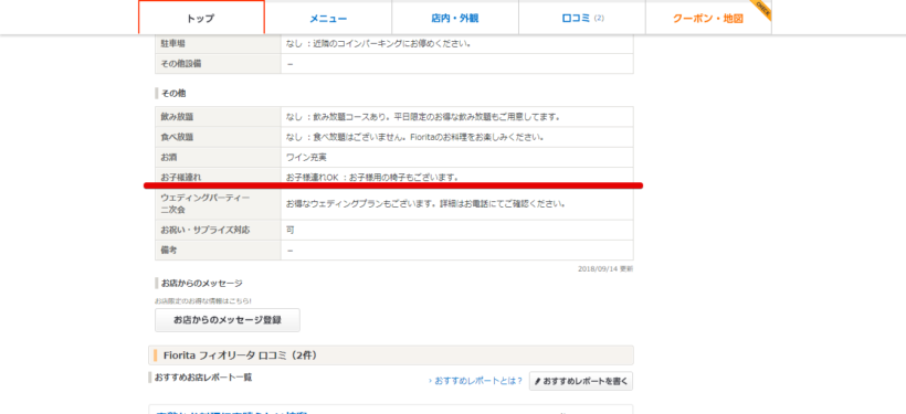 そういった面では、公式サイトでも、Facebookでも、食べログでも、インスタでも構わないですが、小さい子供がOKかどうか、どんな設備があるか載せているお店はとても助かります。