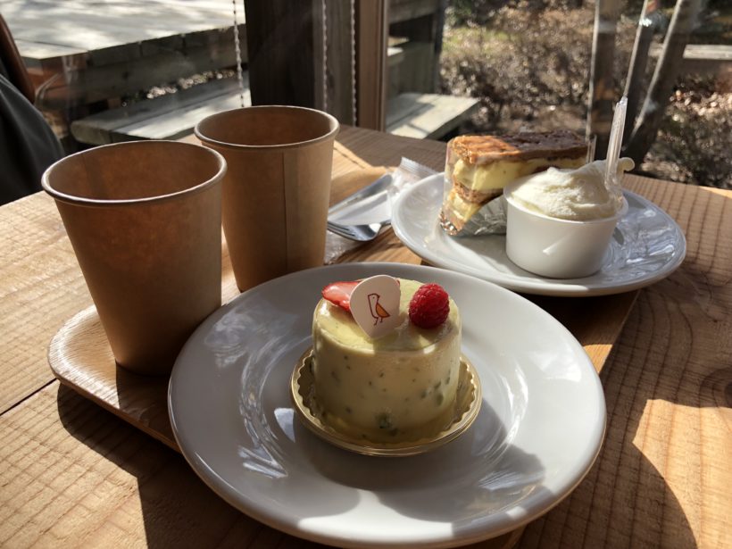 外にはウッドデッキがあり、暖かい季節には外でもケーキを食べることができます。