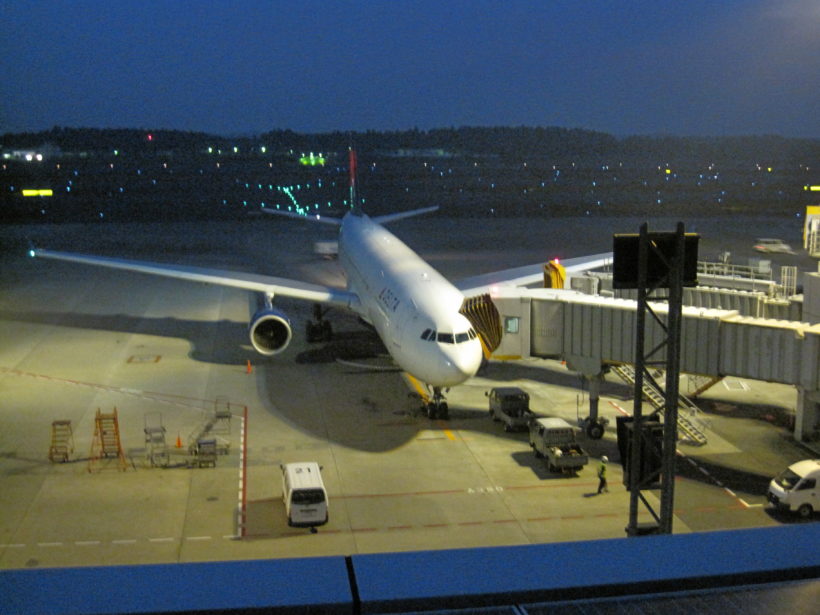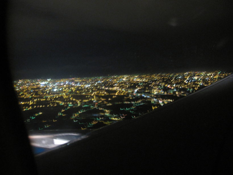 全然覚えていないんですけど、写真を見る限り夜のフライトだったようです。