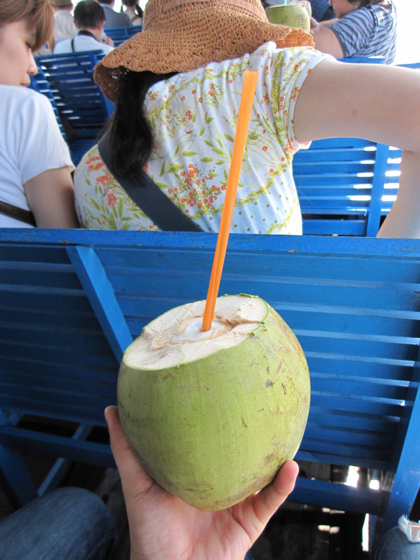 まずは、メコン川クルーズの船上でのココナッツジュース。