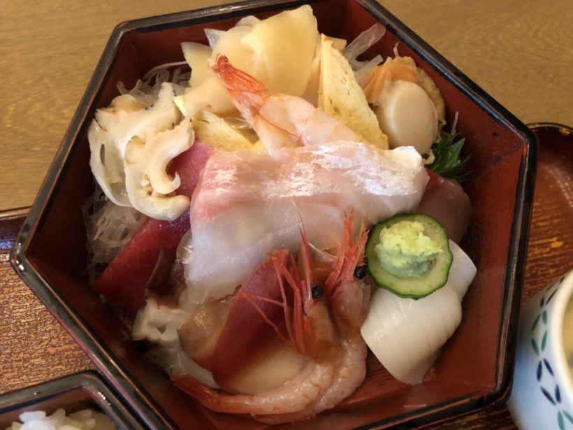 あつあつのご飯の上に刺身が乗っているとぬるくなるので、このシステムは有難い。お刺身定食感覚ですね。