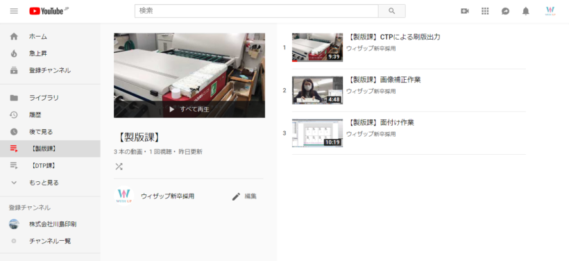 先日紹介したYouTubeウィザップ新卒採用チャンネル。