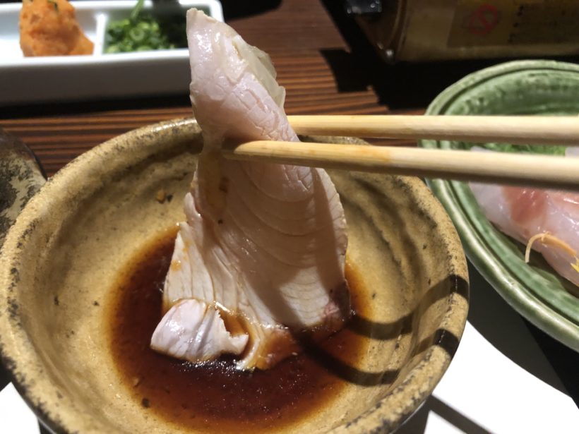 薄切りのぶりを2秒くらいが一番美味しいということでさっとしゃぶしゃぶしていただきます。