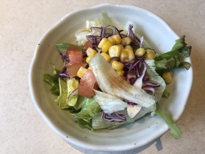 ハンバーグは100gが2つ。なかなかのボリュームです。ハンバーグの味付けは塩コショウかデミグラスソースが選べますが、塩コショウに。お肉の味が感じられて美味しかったです。