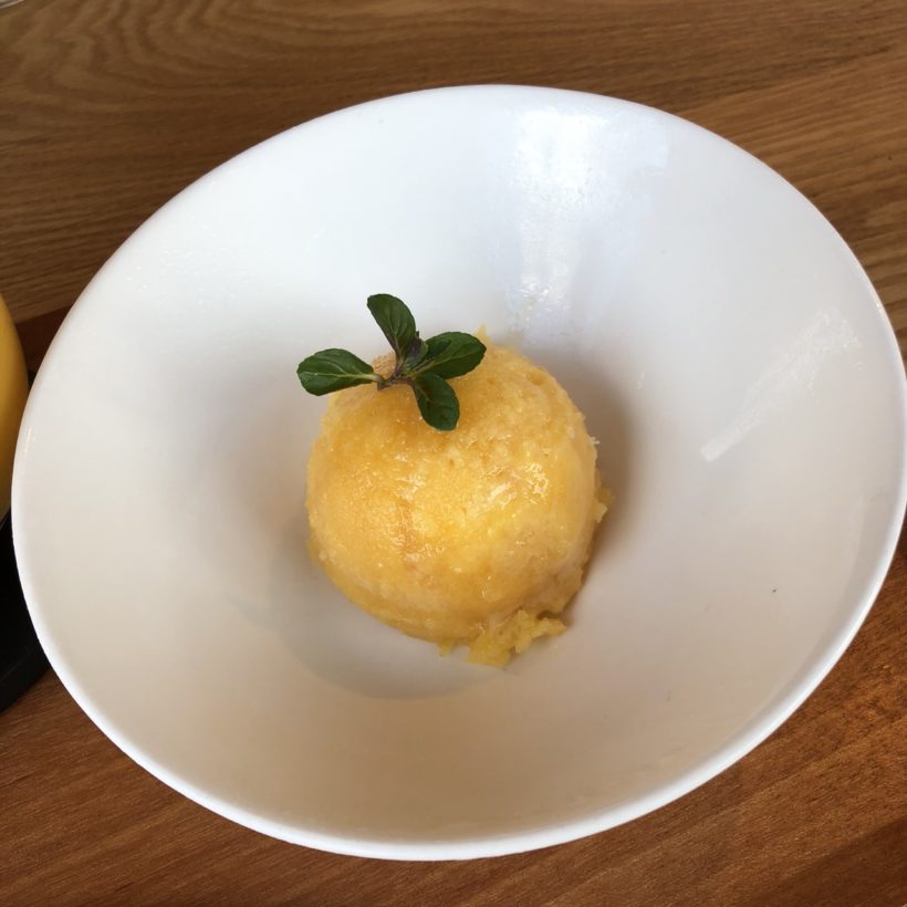 私たちは「ハニーバターチーズパンケーキ」、娘には「ジェラート(オレンジ)」を注文。