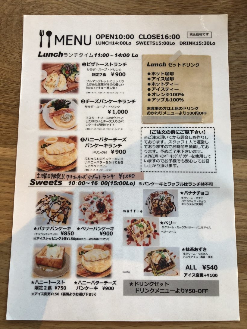 店内ではパンケーキやワッフル、ランチも食べることができます。