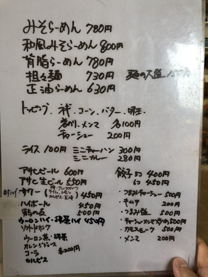 種類が豊富なのが特徴的です。個人的にはこのお店の一番のウリは「みそらーめん」。濃い目の味で美味しいんですよね。