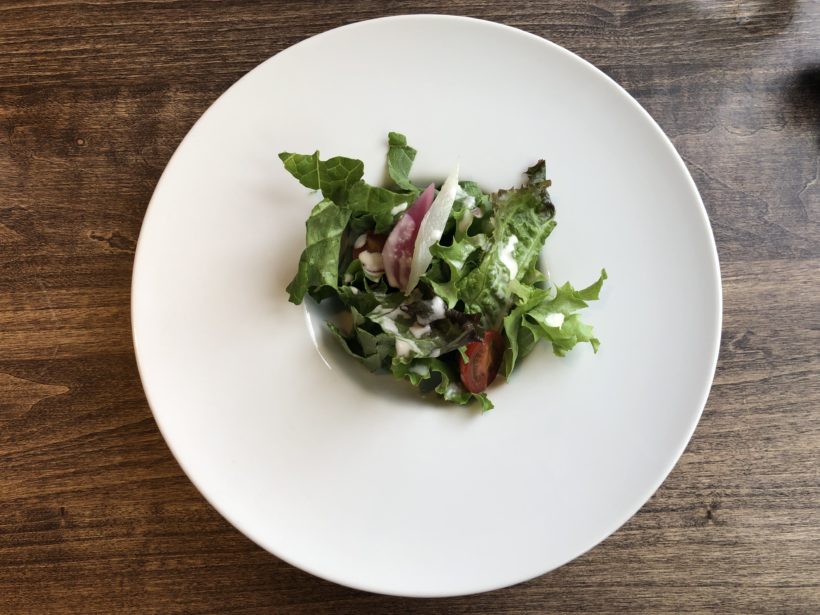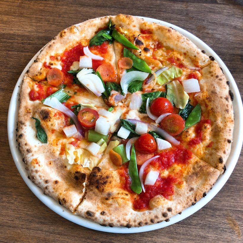 娘のピザはサラダがつきました。ピザはトマトやかぶ、いんげんなど彩り豊かな野菜が使われていて見た目も華やか。もちろん味も良し。娘も美味しそうに食べていました。因みにピザの単品注文はやっていないそうです。