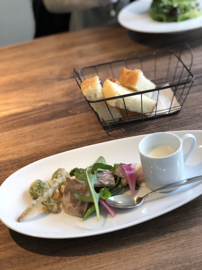 奥さんも同じランチで、パスタは「じゃが芋とリコッタチーズのラビオリ 生ハムとアスパラガス 温卵添え」(+400円)にしてました。娘にはデザートは不要だったので「pranzo Z」(1,180円)で「旬野菜のオルトラーナ ロッソ」を注文。