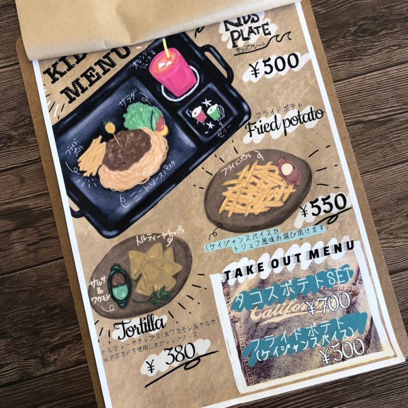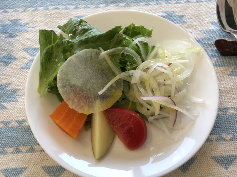 パスタランチ、タコスランチ、いずれにもサラダ、ドリンクが付きます。パスタはパンも付きます。