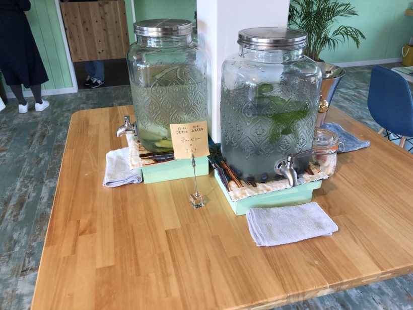また、店内にはセルフでデトックスウォーターとして、何種類かのフレーバーの水が用意されていました。