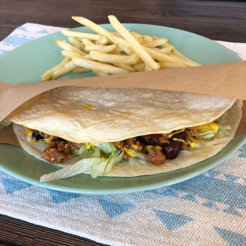 奥さんのタコスも美味しかったです。タコスってあまり食べたことがなかったので新鮮でした。ピリ辛で食欲をそそります。バナナケーキも美味しかった。