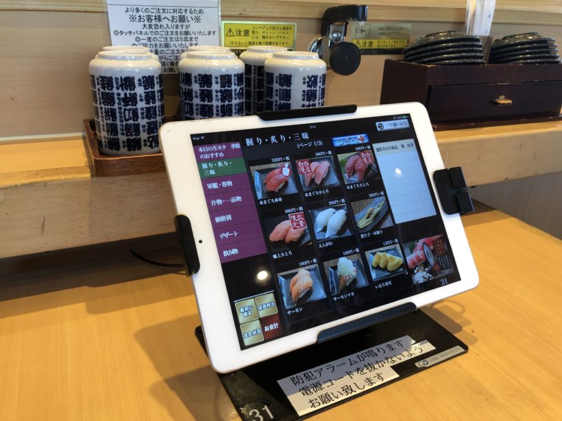 iPadからシステム上で注文です。ハイテクになったものだ。職人のiPadに注文状況が表示されるのでお客さんからの口頭注文を機を苦する必要がなくなり、注文漏れがなくなりますね。