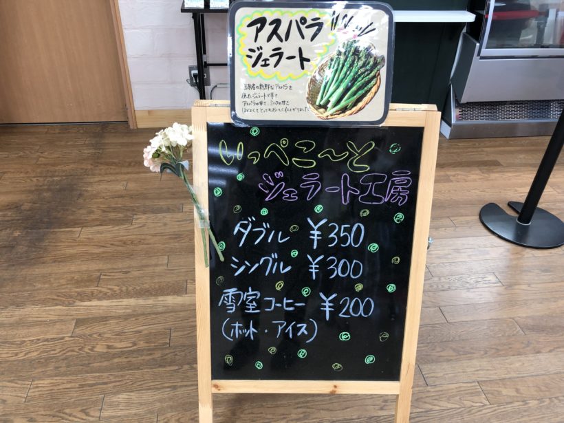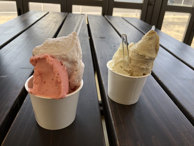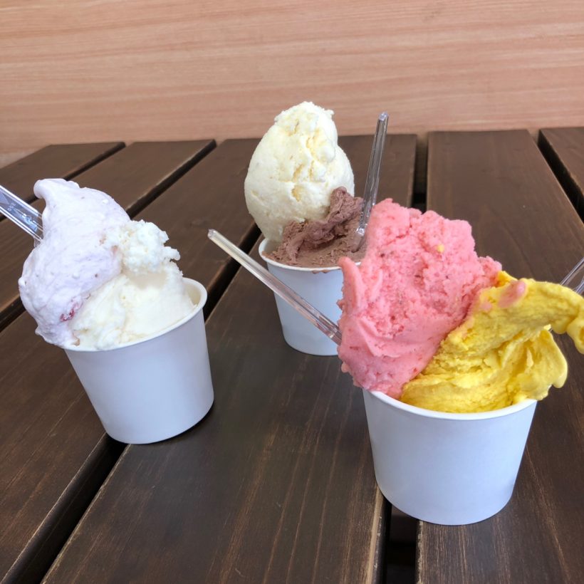 シングル300円、ダブル350円という値段設定。安すぎる。他のジェラート屋さんに行けば必ずダブルは400円台に突入するのに。農産物直売所が運営しているジェラート屋さんで材料の仕入れは直接できるからこの値段が実現できるのかもしれません。とにかく安い。