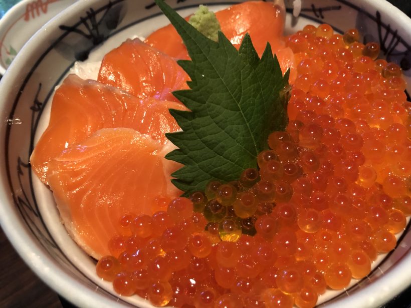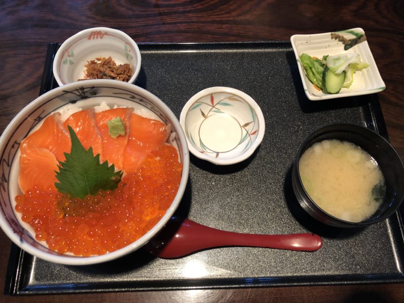 鮭親子丼は鮭が村上名産なだけあって美味しいに決まってる。いくらがぷりぷりだし、鮭のお刺身も新鮮。