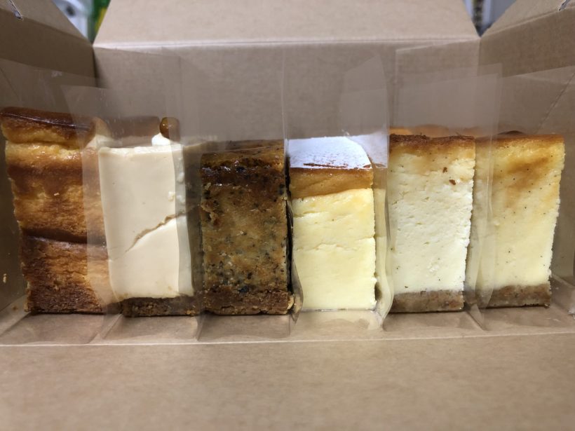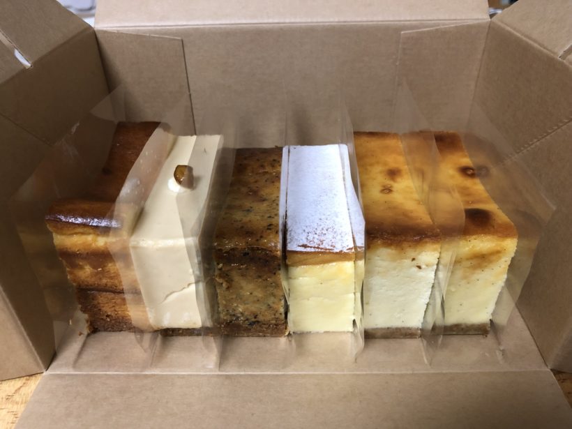 すべてベイクドチーズケーキより重めのチーズケーキ。ずっしり感があります。チーズケーキ好きにはたまらないですね。定番の2種は1本買っても1日で食べてしまいそうなくらい美味しかった。
