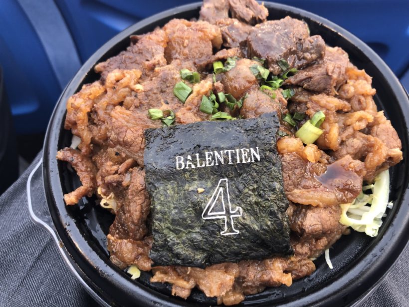 バレンティンプロデュースの焼肉丼。1,300円くらいだったかな。かなりのボリュームでお腹いっぱいに。他にも食べたかったけど無理でした笑。スタジアムグルメって高くて量が少ないのかと思っていたけどそんなことは全くないですね。