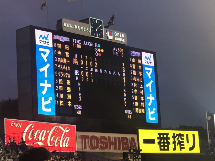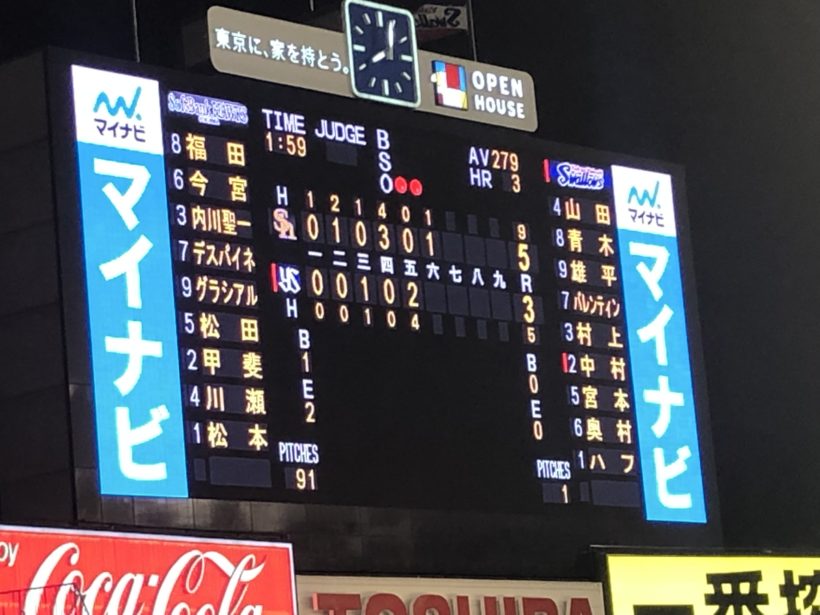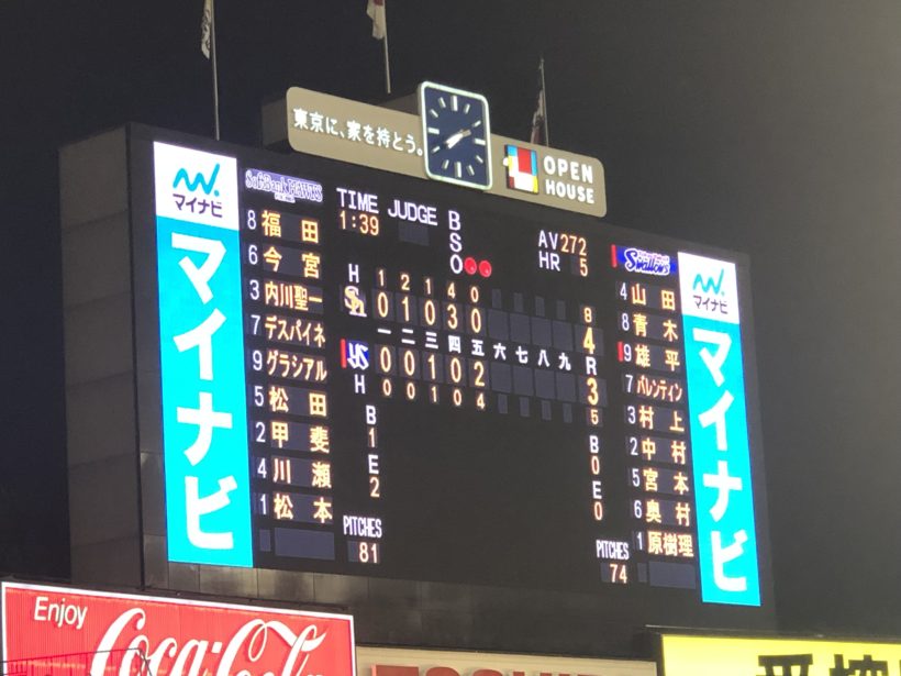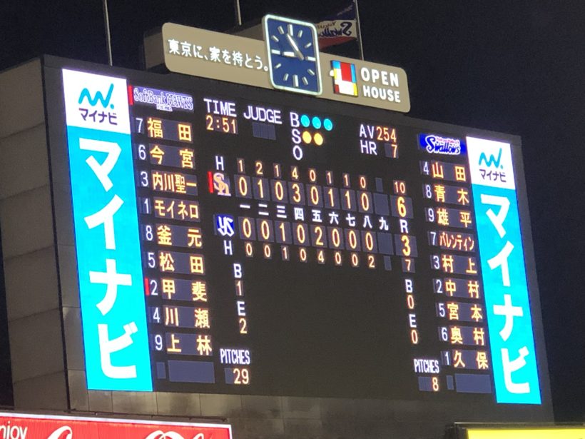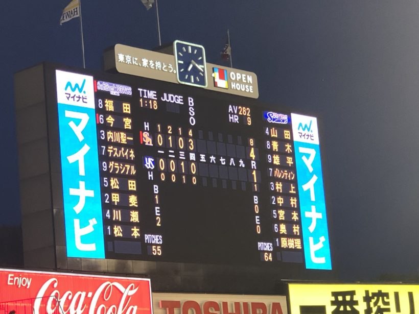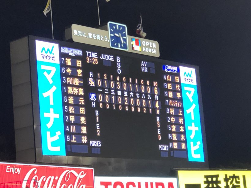 結果的には4-6でソフトバンクの勝利。ヤクルトは負けました。