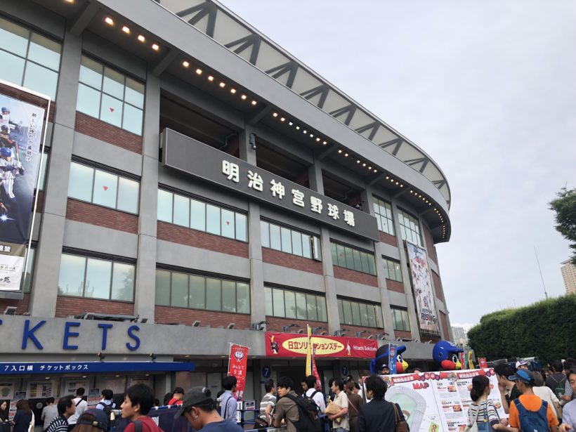 本当に隣。神宮球場は、私が好きな球団ヤクルトスワローズの本拠地。個人的に1度くらいヤクルトの試合を生で観戦してみたいと思っていたので今回の懇親会はとても楽しみでした。