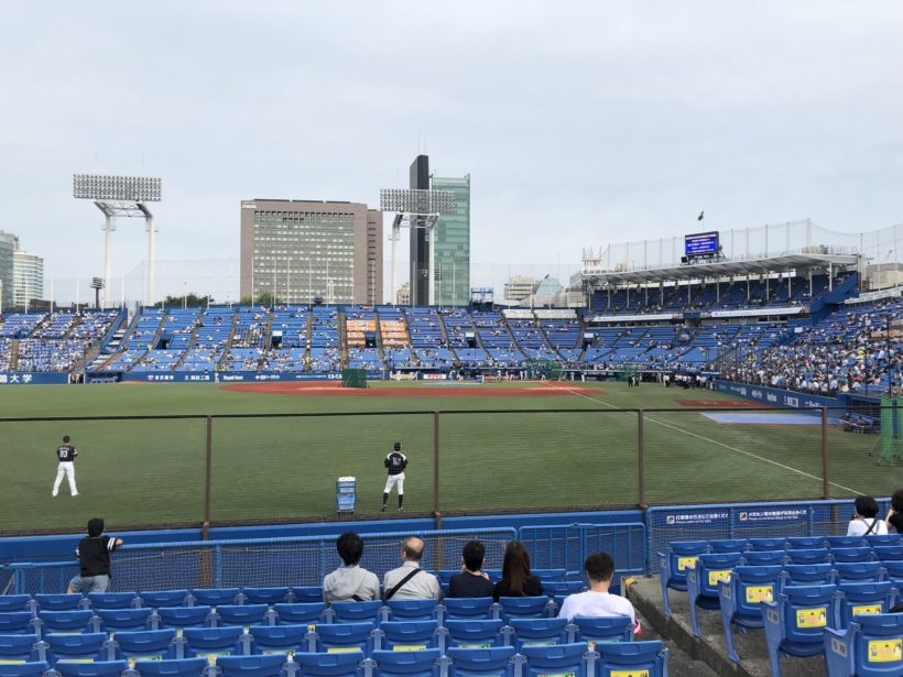 因みに外野席からはピッチャーとバッターは全然見えないですね。でも神宮球場は狭いからまだマシだったと思いますが。