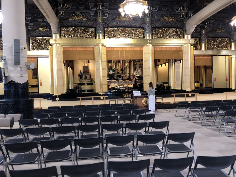朝早かったせいか、お寺の中はあまり人がいません。せっかくなので御焼香させていただきました。作法の説明書きがあるので何もわからない方でも安心してご焼香できます。