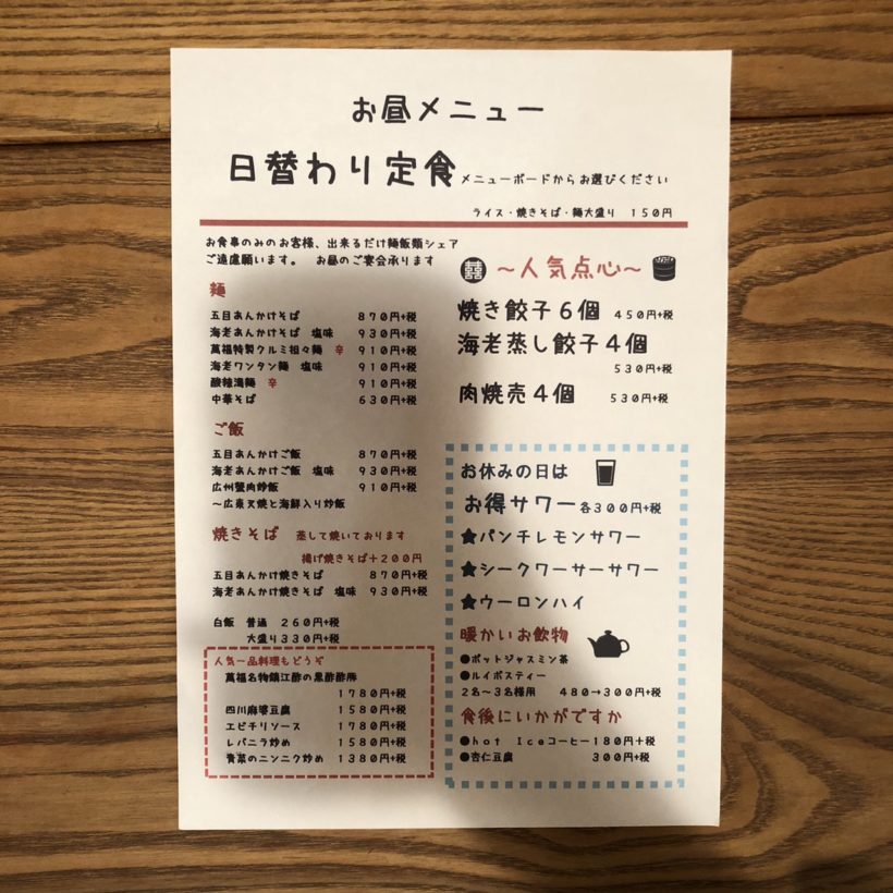 日替わり定食があり、定番メニューとは別でボードに書かれています。