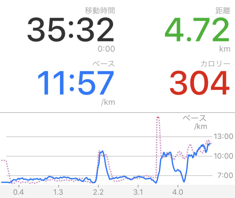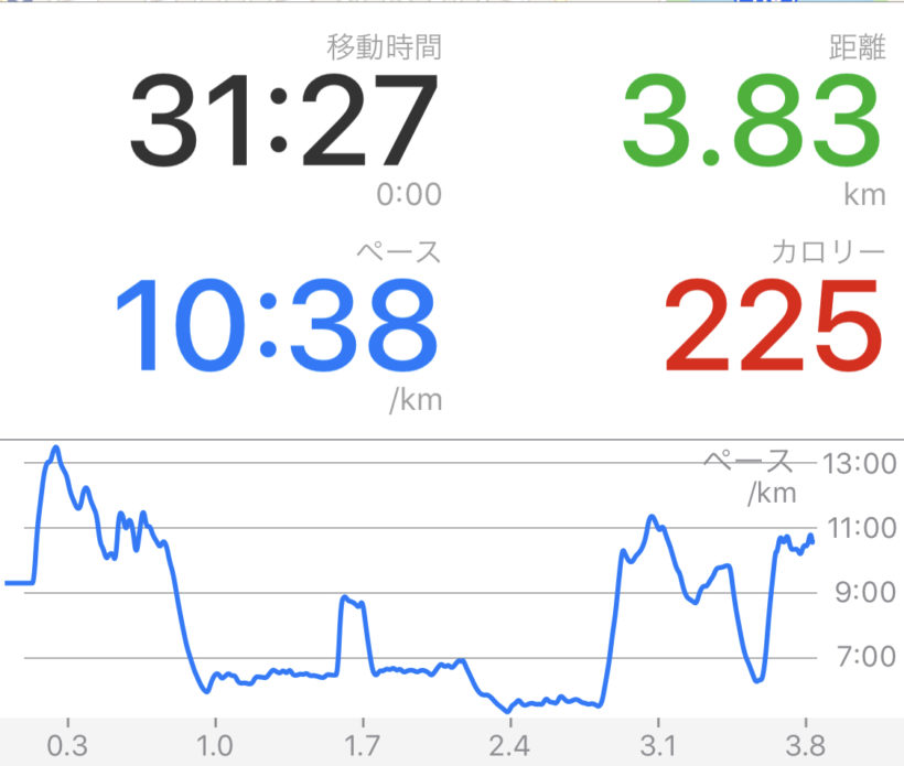 水曜日は残業で帰りが遅かったので時間も距離も控えめに。とにかく無理はしない。仕事に影響出たらまずいですからね。