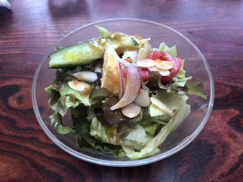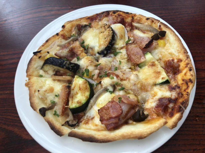 私は「オープンオムライス(チーズ入り)」+サラダセット、長女にはハーフのピザを注文。