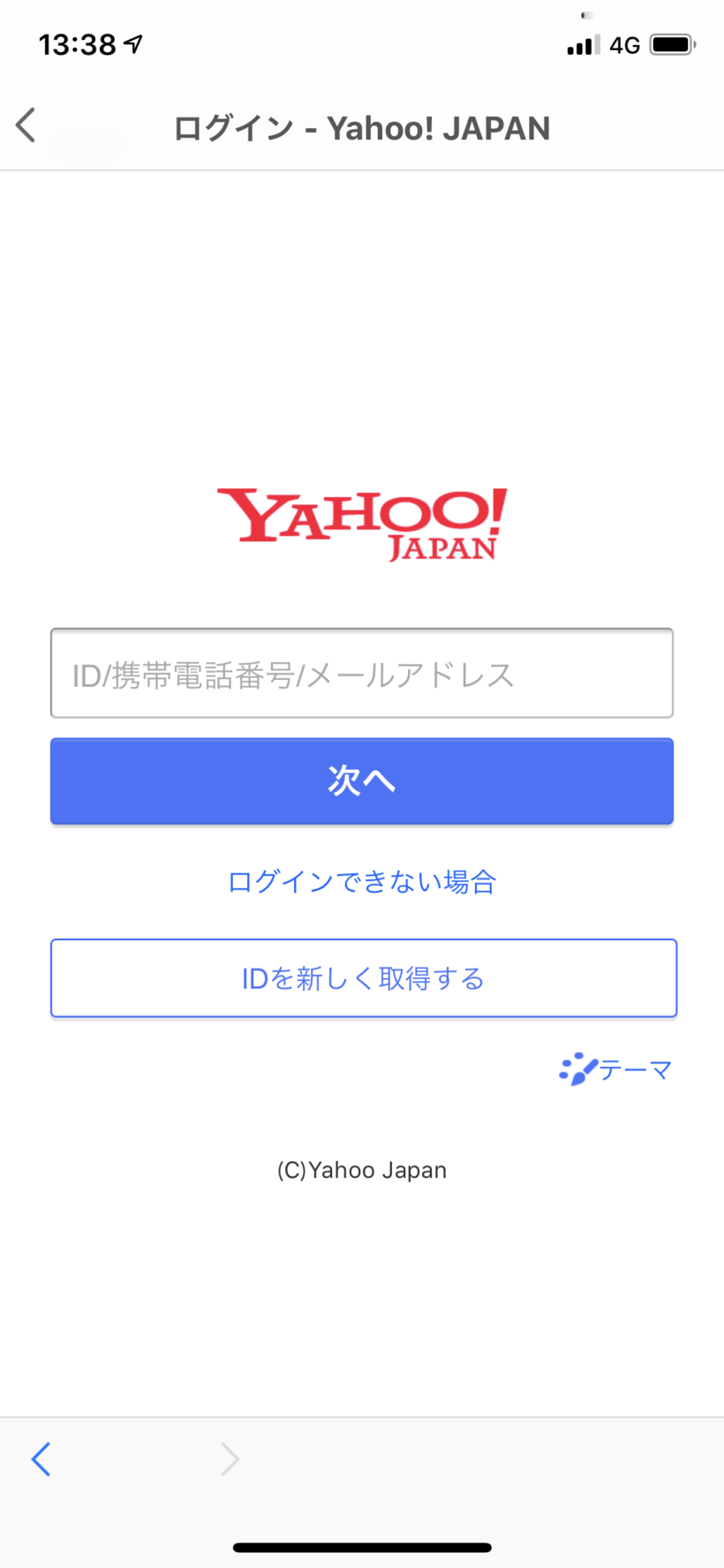「Yahoo!JAPAN ID」をタップして、ID、パスワードを入力します。