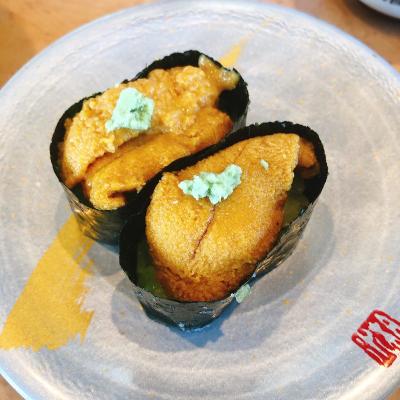 しまあじは好きなので最初から2皿注文。あじと名前はついていますが、脂がのっていて真あじとは味が全然違います。ウニも甘さを感じて美味しい。