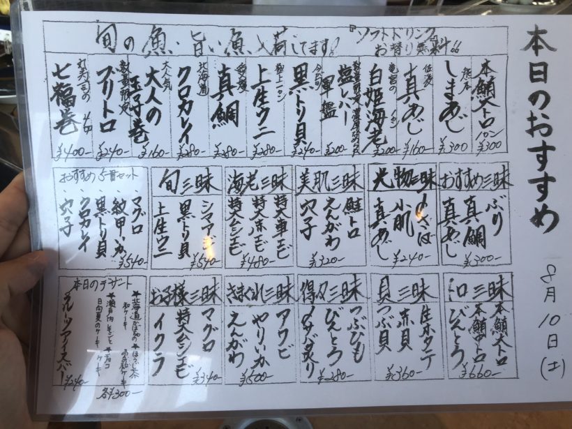 素晴らしいメニュー群です。個人的に好きなしまあじもあるじゃないですか!
