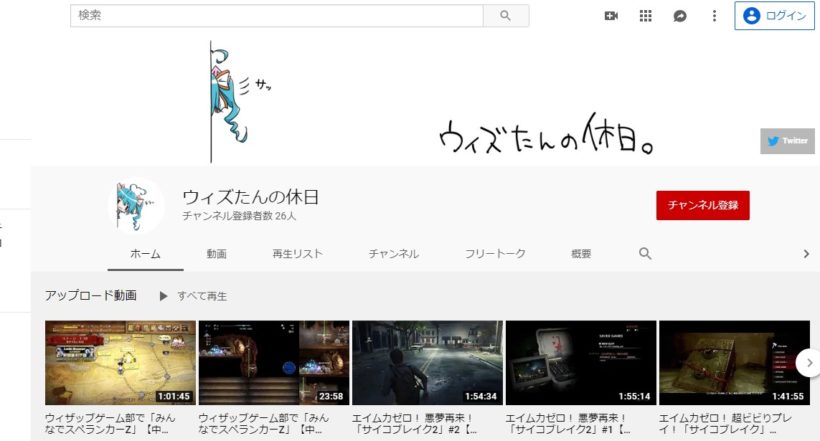 ウィザップの会社のTwitterアカウントを運営している担当者がyoutubeチャンネルを作ってゲーム実況をしているようです。