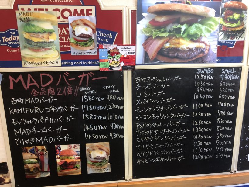 とりあえず初めてなので、私は様子見でこのお店最大ボリュームのMADバーガー「KAMIFURUゴチソウバーガー」にしました。初めてなので様子見です。