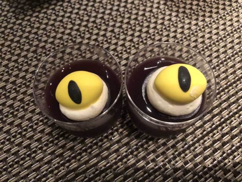 前菜やデザートは「目」がついていたり、見た目もキモカワな盛り付けに。