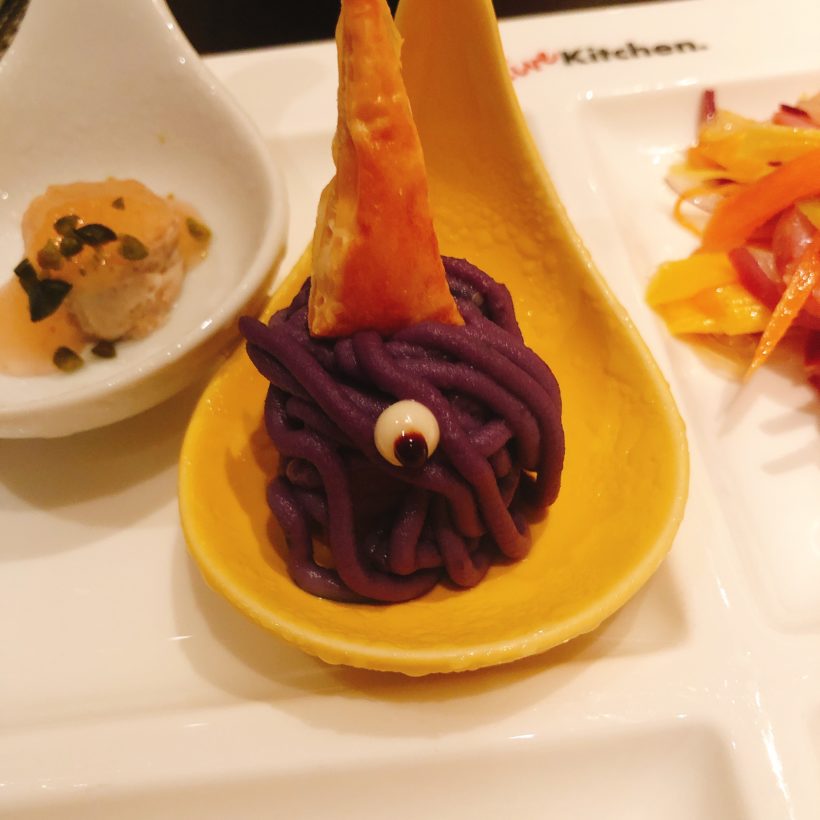 でも、写真を撮った目玉がついている紫芋のペーストがのったパテは美味しかったな。パテ好きなので。