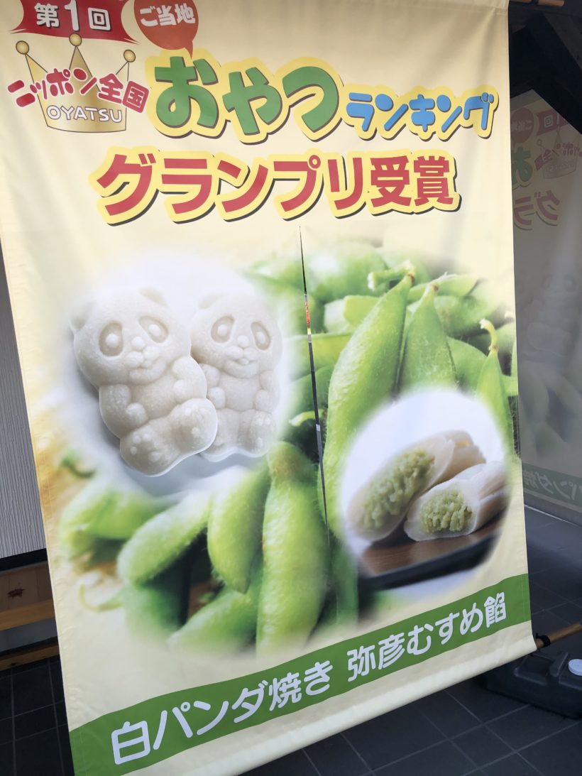 なんといってもこのパンダのフォルムが可愛らしい。様々な餡やクリームを包む生地はもちもちしているのが特徴です。ぱさぱさ感は全くありません。とにかく美味しい。どの味も美味しいのですが、やっぱりグランプリを受賞しただけあって特に美味しかったのが、弥彦むすめ餡。弥彦むすめというのは弥彦村で生産されている枝豆の事で、ずんだ餡ですね。香りが良くて甘すぎずいくらでも食べられそうです。