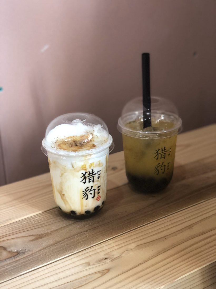 奥さんは「黒糖ブリュレタピオカラテ」、私は「パインタピオカ」。