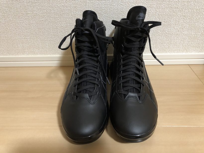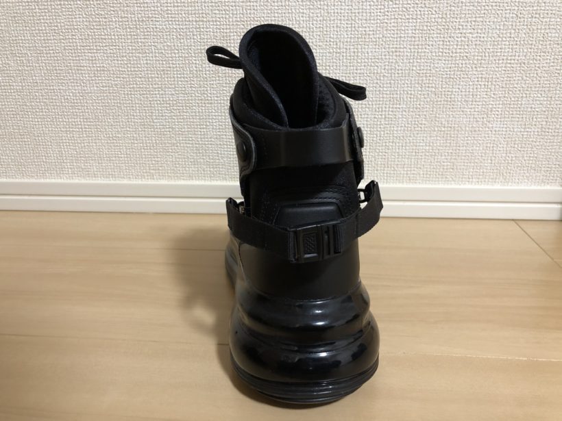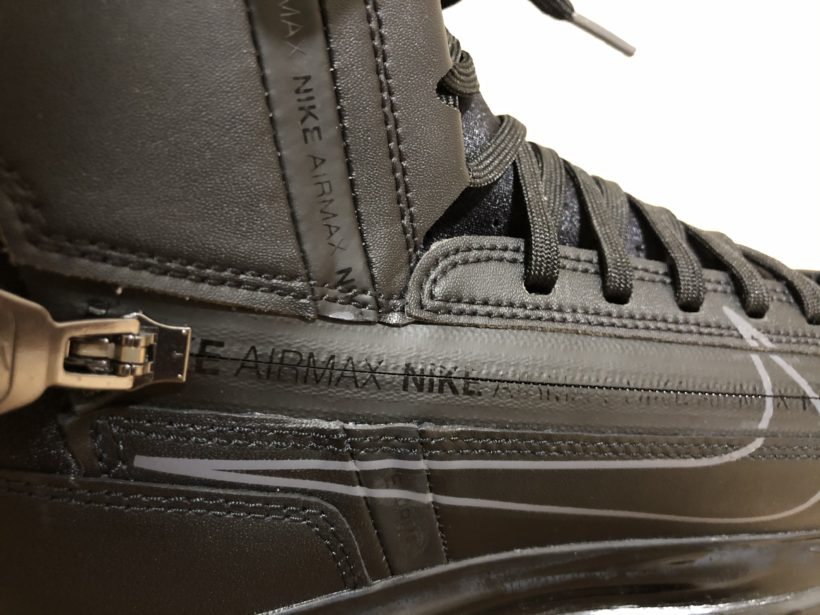 ひもの結び直しが不要な点は嬉しいですね。ジップを隠す部分にもニスのようなもので「NIKE AIRMAX」と印字されていたり細かい所にも凝っている。こういうの好きなんですよね。