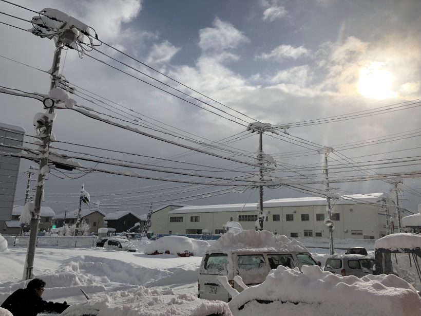 この時は5時に起きて雪かきをしましたが、一人の力では何ともならず、6時くらいから住民の方々が除雪し始め、道路に出ることができたのが朝9時の出来事でした。