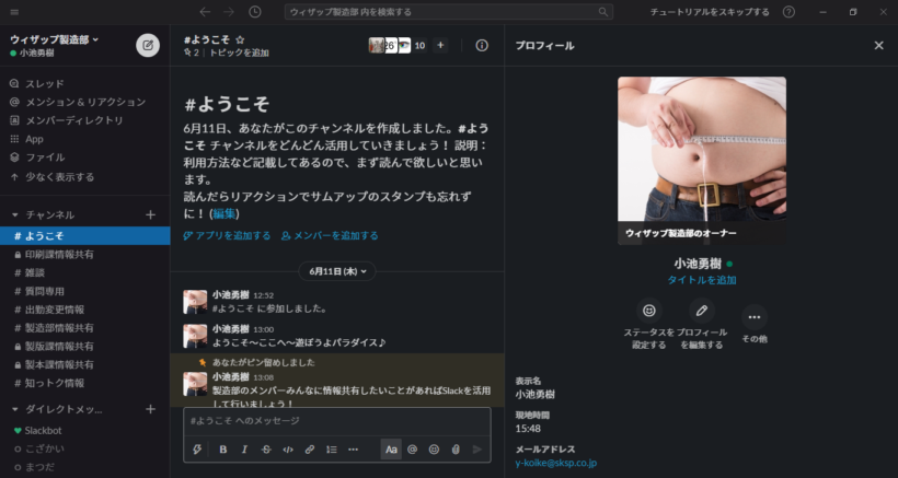 製造部はリモートワークではないので、Slackは必要なの?と思う人もいるかもしれませんが、以下のようなメリットがあると感じて使う事にしています。