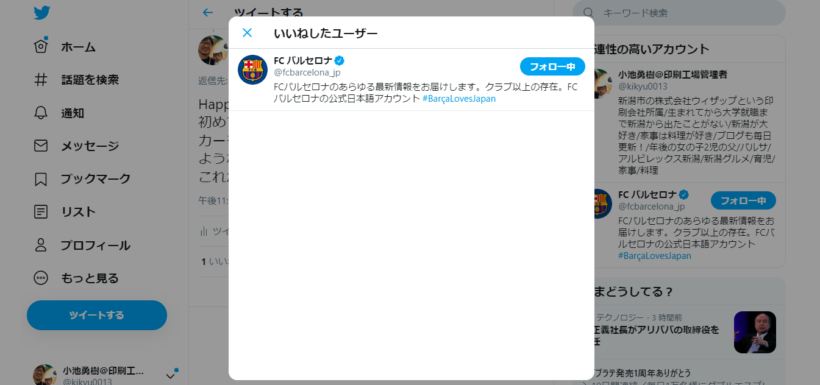 昨日、TwitterでFCバルセロナの日本の公式アカウントにリプライしました。