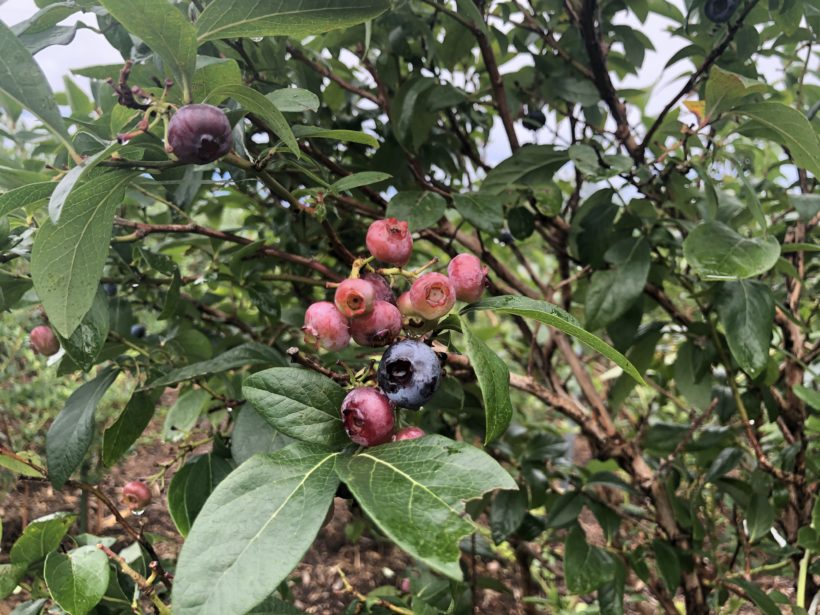 9時30分頃に到着しましたが、雨はやんでいて、ブルーベリーたちは雨露でキレイになっていたし、曇り空で心なしかブルーベリーが冷たくなっていて美味しかったです!