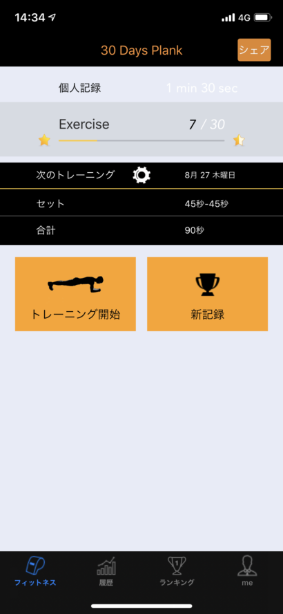 30日の内すでに6日分消化。7/30と書いてありますが、今日の分が7日目としてアプリには記載されています。