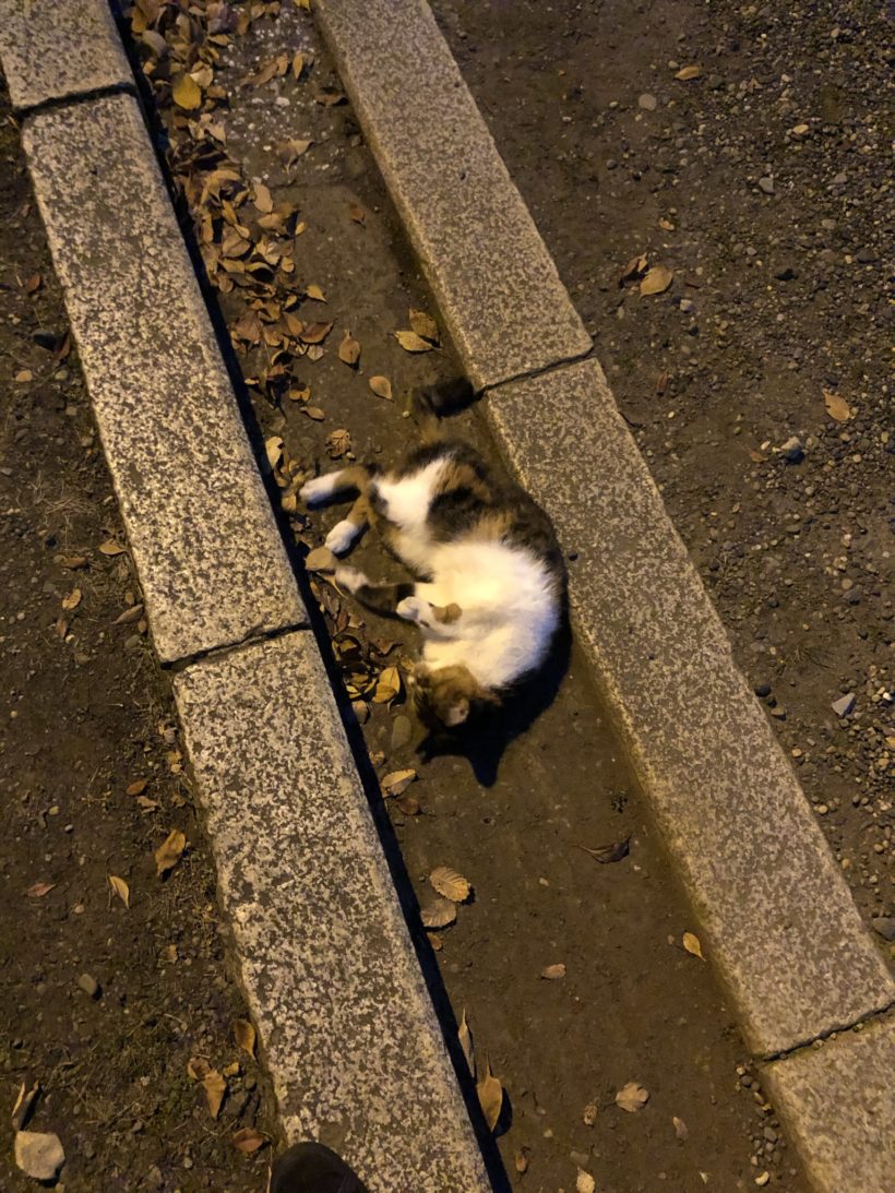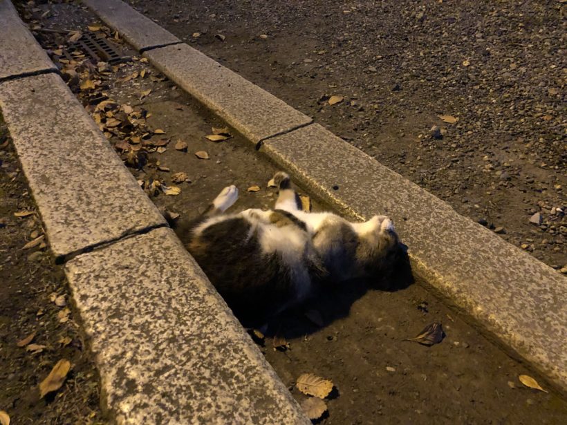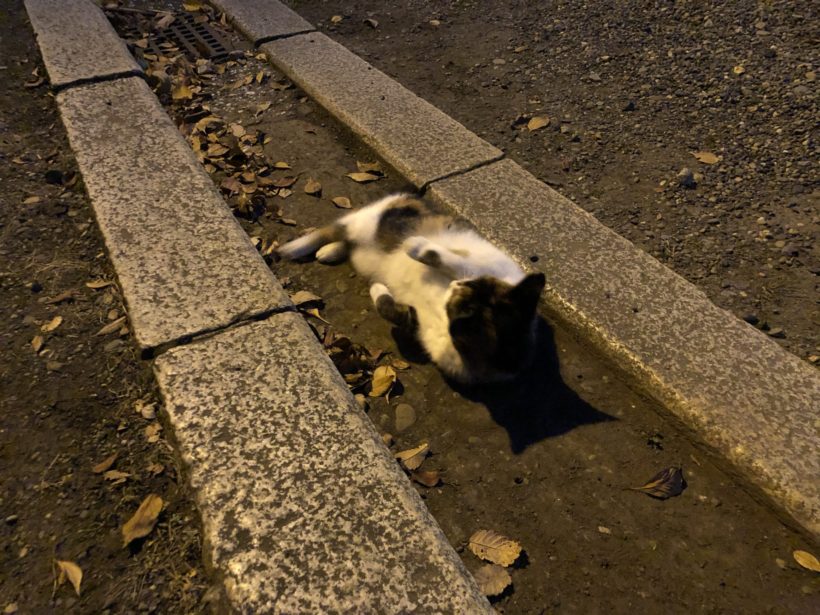 体がかゆかったのか、地面に横たわって体をこすりつけていました。さすがに、東京の野良猫に触れる勇気はなかったですね。コロナで衛生面にも過敏になっているのに野良猫をかまうなんてことはできないです。