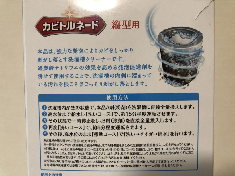 今回使ったのは洗濯層クリーナー「カビトルネード」。