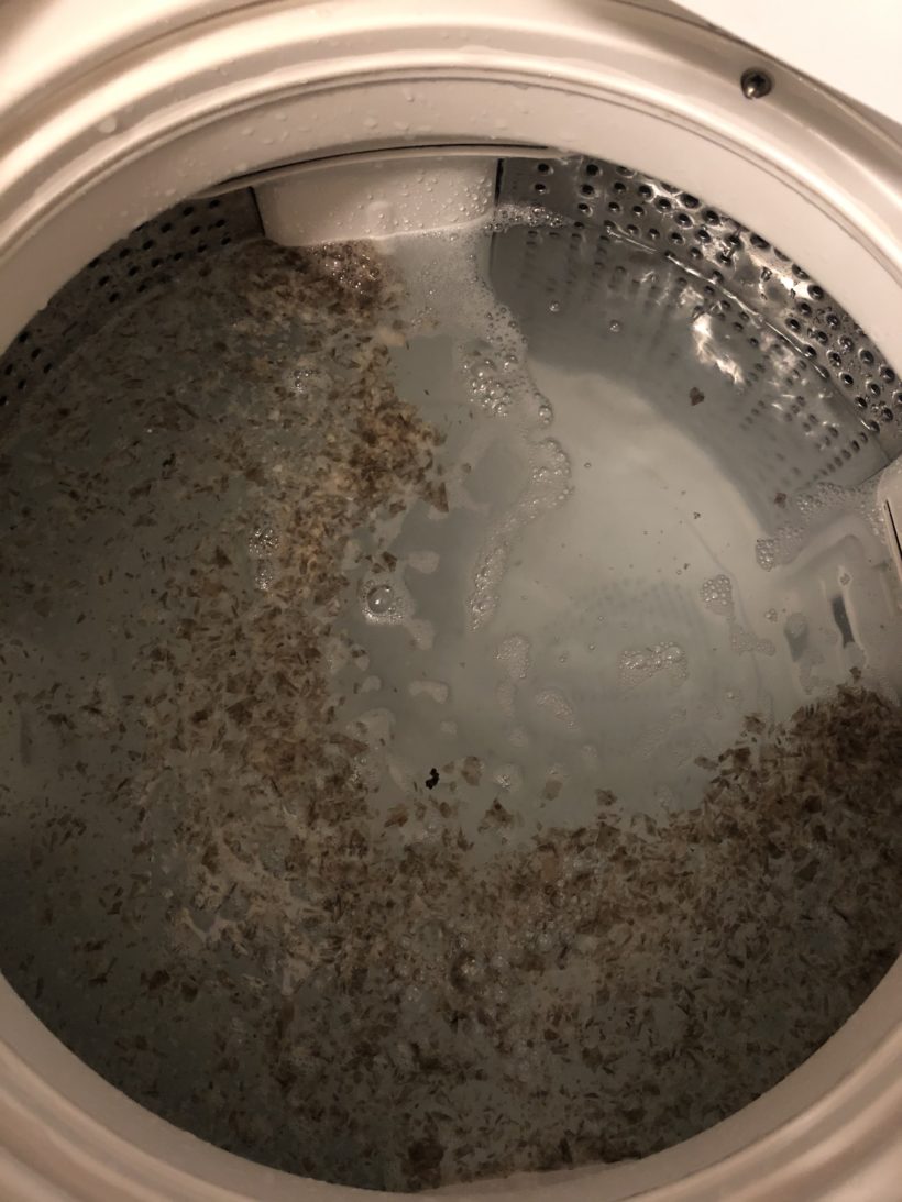 今まで洗濯層カビキラーの塩素系を使用していたので汚れが溶けてしまう事から、落ちている実感があまりなかったのか。汚れが目に見えてあの茶色い海苔みたいなものが浮かんでくると掃除した実感が沸くから好きなんですよね。