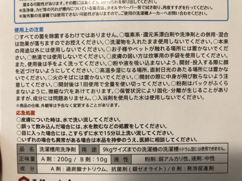 洗濯層クリーナーは塩素系と酸素系に分かれますが、こちらは酸素系。