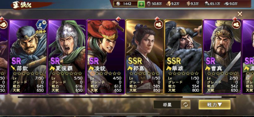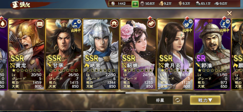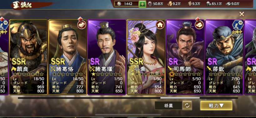 そして、キャラクターが強くなる要素としては「将星」「レベル」「グレード」の3つですが、一番強化できる要素は「将星」なんです。運営としても収益伸ばすためにはガチャ引いてもらいたいと思うのでこの仕組みになるのでしょう。