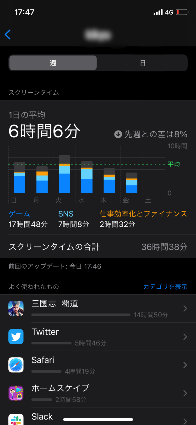 他の人たちはDAZN、Youtubeとかが使用時間長いアプリなのに、自分だけゲームが上位にランクインするとは。